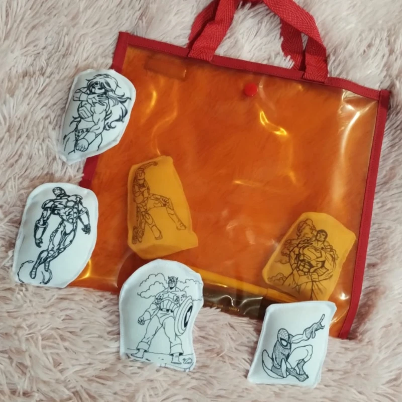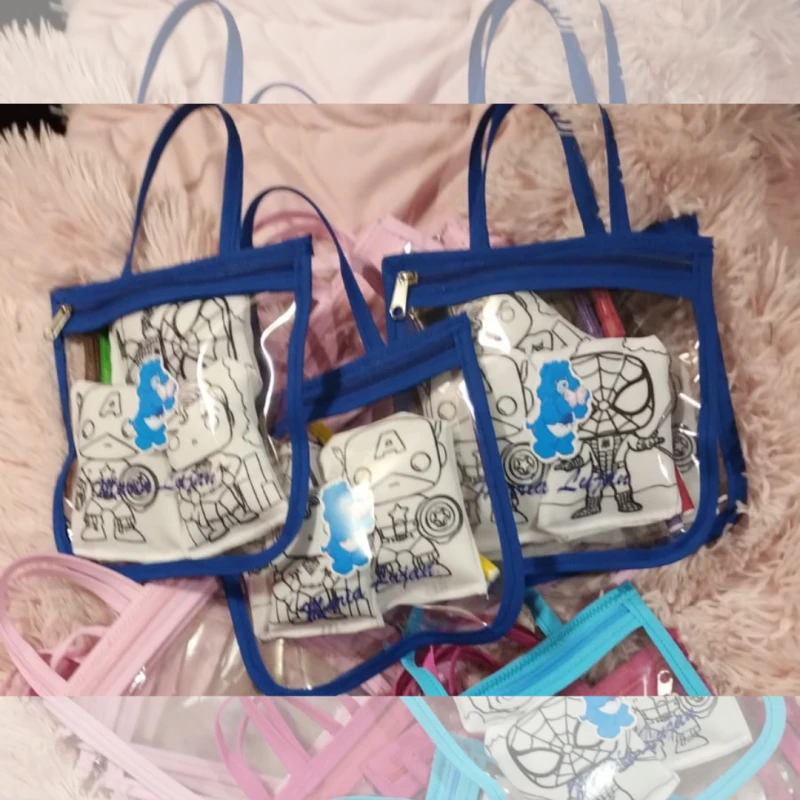 Viene con una bolsa de cristal con manijita, perfecta para llevar a todos lados, y 5 almohadones chiquitos con el personaje que más les guste.