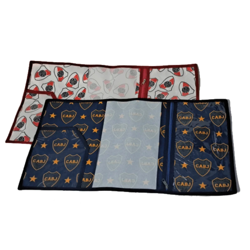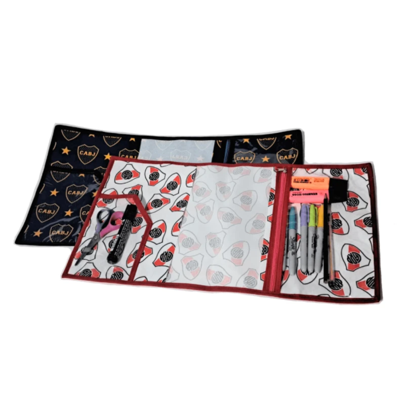 Están confeccionadas en material resistente y cuentan con un bolsillo interno con cierre, perfecto para guardar marcadores, lápices, lapiceras o papeles sueltos.