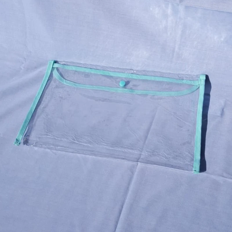 Sobre tamaño A4 con cierre superior, perfecto para hojas, carpetas finas o apuntes, que entra dentro del sobre grande para mayor practicidad.